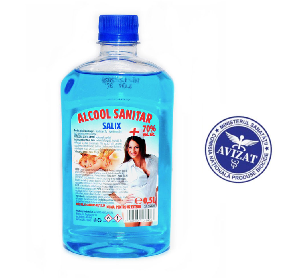 Dezinfectant de uz extern, contine 70% alcool etilic , destinat utilizarii casnice si in unitatile sanitare