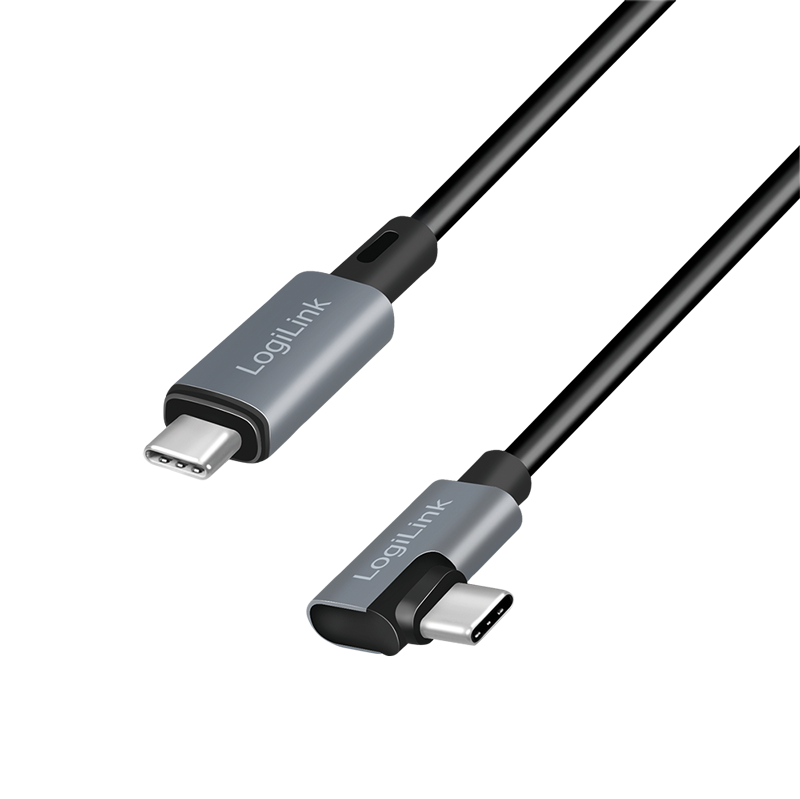 CABLU alimentare si date LOGILINK, pt. smartphone, USB 2.0, USB Type-C (T) la USB Type-C (T) la 90 grade, 1m, PD 100W, 2 x ecranat, plastic, negru, „CU0182” (timbru verde 0.08 lei)