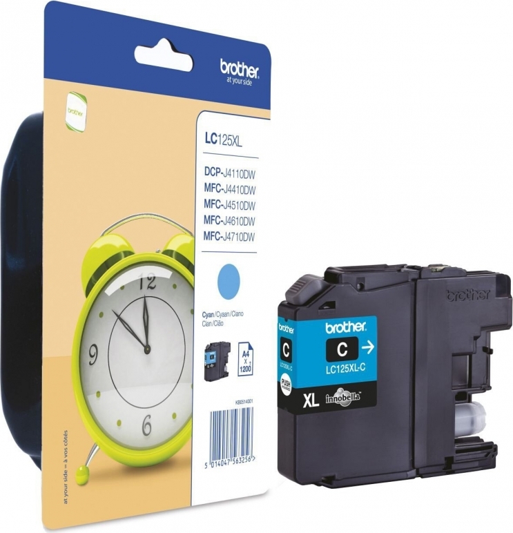 Cartus Cerneala Original Brother Cyan, LC125XLC, pentru DCP-J4110|MFC-J4410|J4510|J4610|J4710|J6520|J692, 1.2K, (timbru verde 0.15 lei), „LC125XLC”