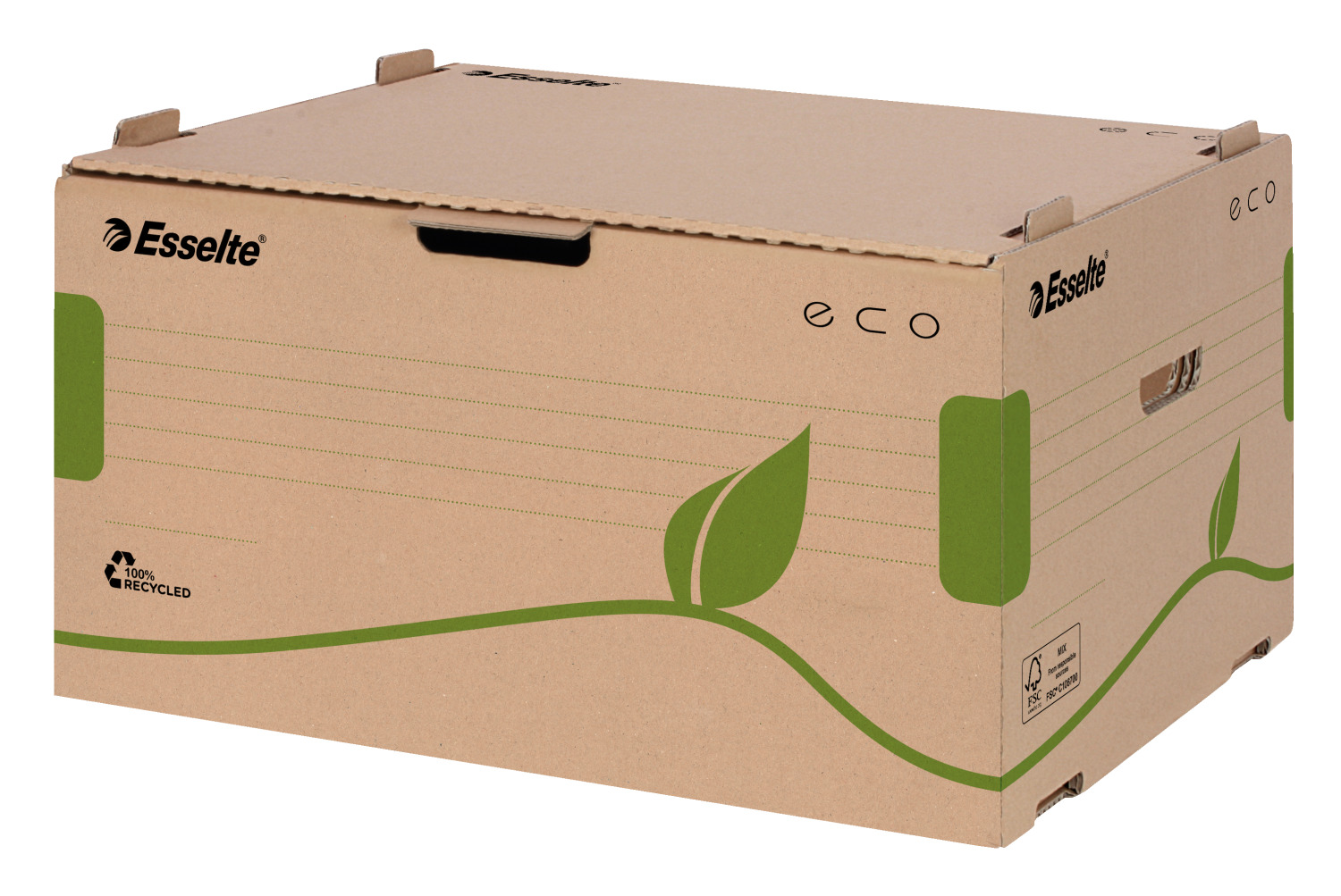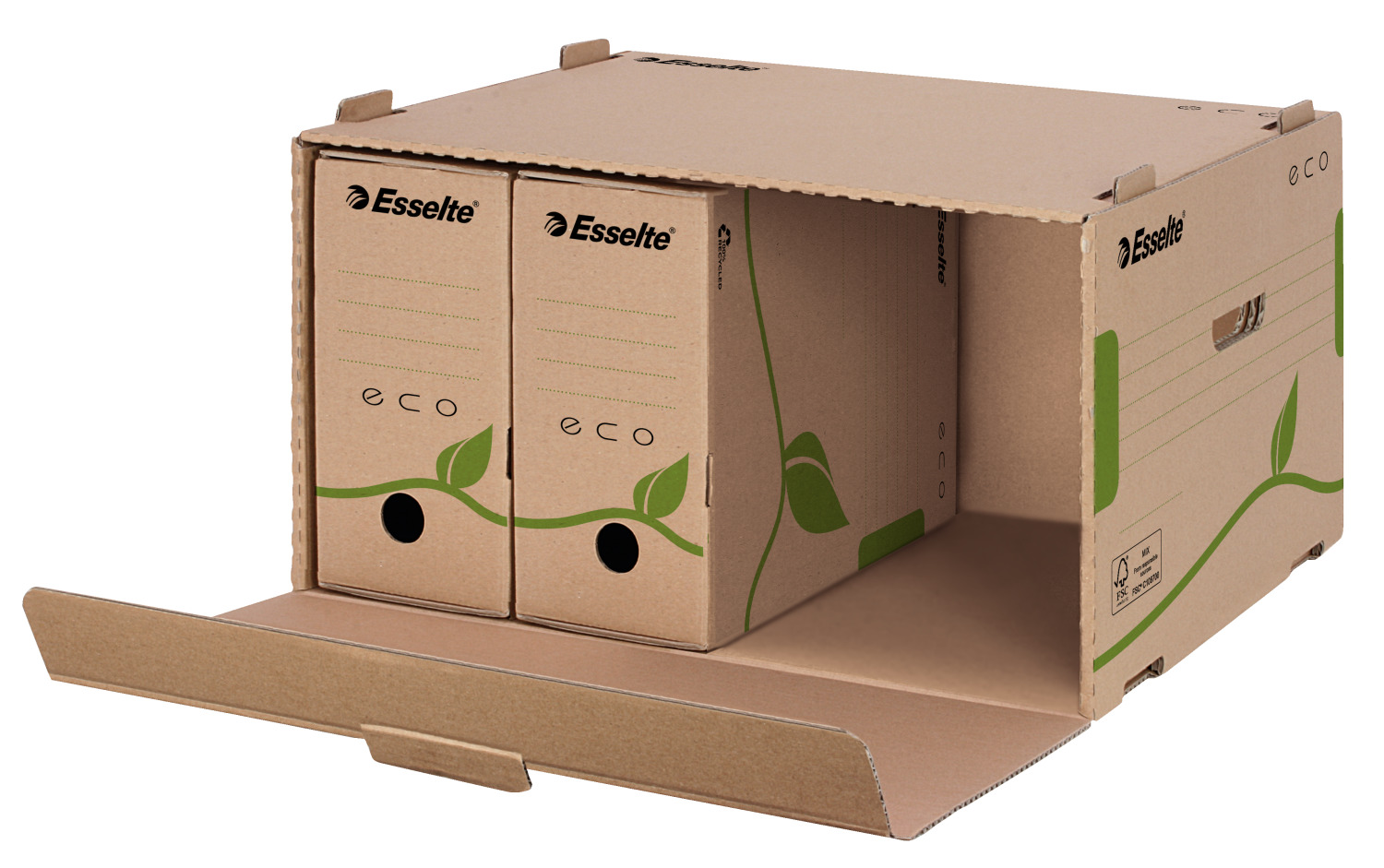 Alegand Gama Eco beneficiezi de o solutie de arhivare eficienta si economica, contribuind in acelasi timp la protejarea mediului inconjurator. Produsele sunt fabricate din carton ondulat 100% reciclat si sunt 100% reciclabile si certificate cu eticheta FSC.