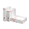 Ideale pentru arhivarea documentelor legate cu alonja de mare capacitate. Deschiderea mare ofera un acces mai bun si faciliteaza arhivarea documentelor. Potrivite pentru arhivarea documentelor in biblioraft de 75/80 mm. Pentru documente A4 si foolscap. Dimensiuni ideale pentru etajere si rafturi de arhiva, cutia putand fi pozitionata vertical sau orizontal. Asamblare usoara, urmarind instructiunile afisate pe cutie. Fabricate din carton ondulat 100% reciclat, 100% reciclabile. Certificate FSC. Dimensiuni: 330 x 80 x 260 mm. Culoare: alb.