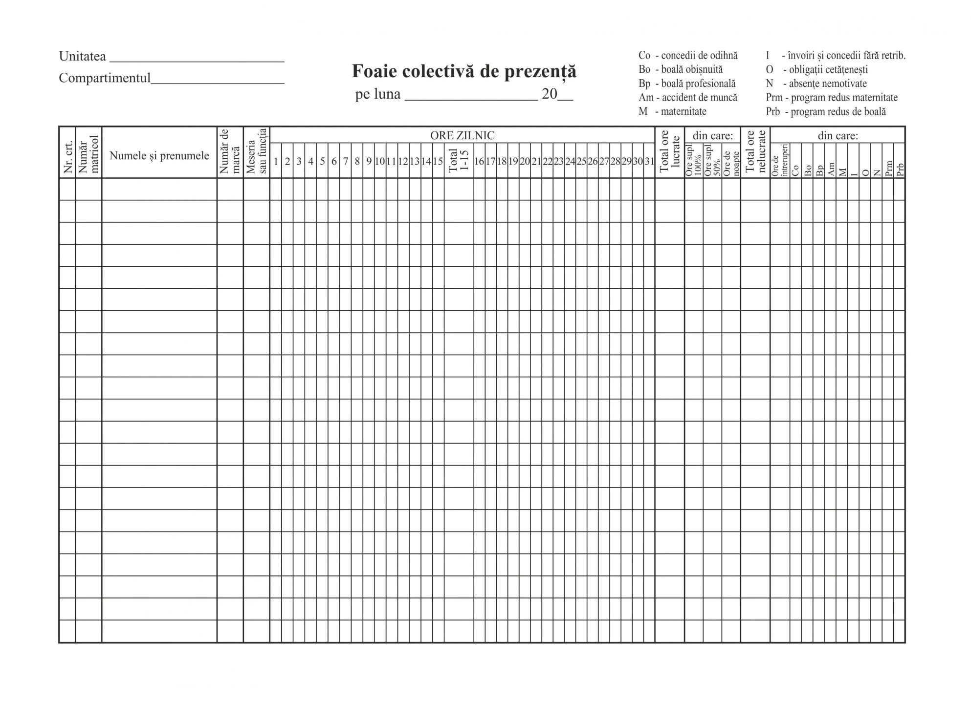 FOAIE COLECTIVA DE PREZENTA