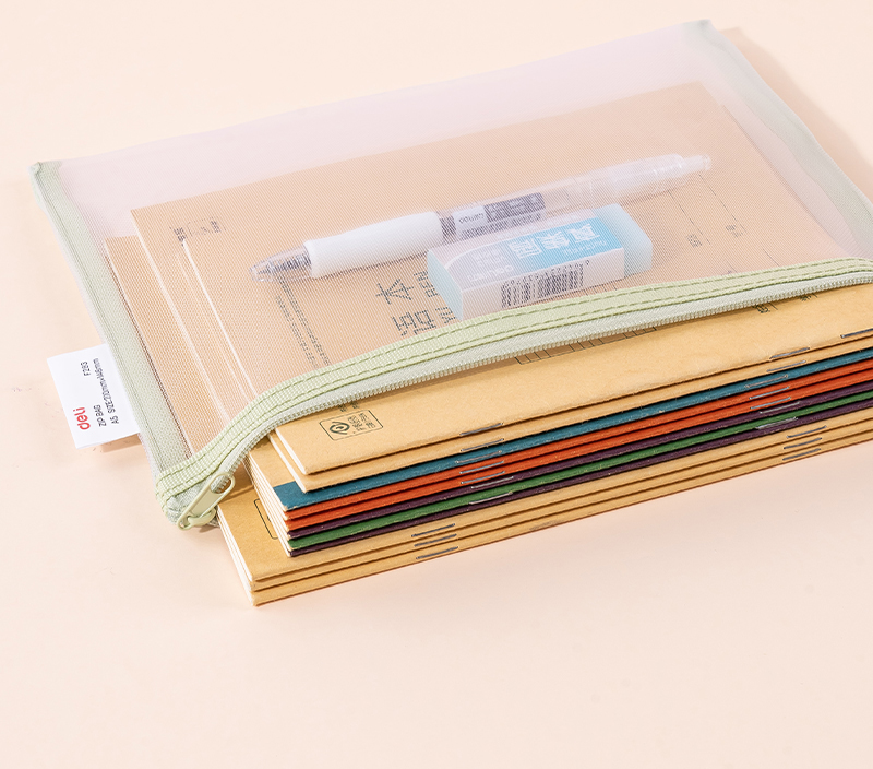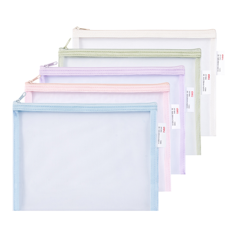 Mapa A5 de protectie cu fermoar Deli, flexibila, confectionata din mesh poliester cu grosimea de 0.33mm. Culori asortate cu un design deosebit. Capacitate mare de stocare documente.