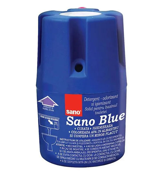 Odorizant toaleta Sano, 150 g. Igienizeaza si elimina mirosurile neplacute. Datorita designului sau compact, produsul este usor de pozitionat in rezervorul de apa, eliberand o doza constanta de igienizare si parfum la fiecare tragere a apei. Formula sa activa elimina murdaria si asigura o igienizare completa a toaletei. Parfum placut si de durata.