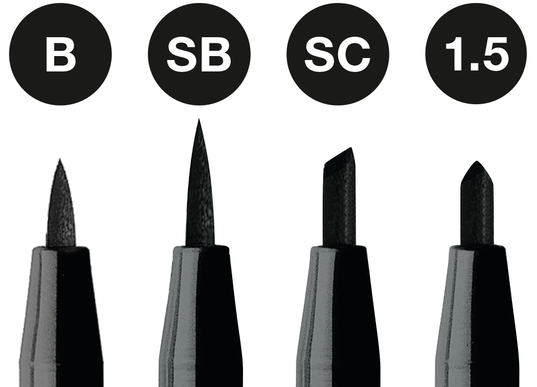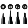 Set de 4 buc Pitt Artist Pen negru (SB, SC, 1.5, B). Cerneala cu PH neutru, rezistenta la lumina. Dupa uscare culorile sunt rezistente la apa si nu se intind pe hartie.