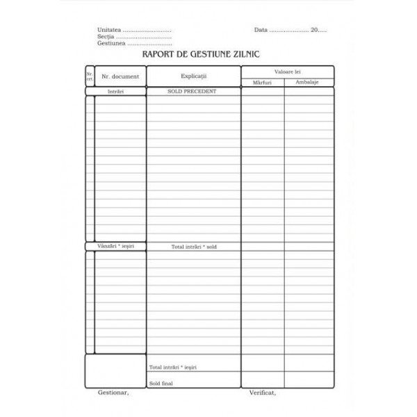 RAPORT DE GESTIUNE ZILNIC