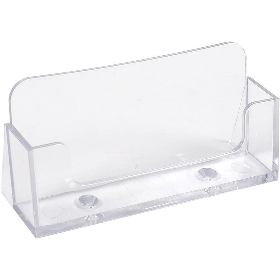 Suport pentru carti de vizita, transparent, din material plastic. 1 compartiment, sustine pana la 50 de buc, adancime de 18mm. Pozitionare: pe birou. Dimensiune:34x102x47 mm. Greutate: 30g.
